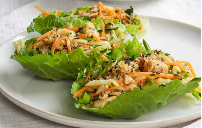 Store the tofu and rice mixture in an airtight container in the fridge for up to 3 days. Assemble with lettuce leaves just before serving.