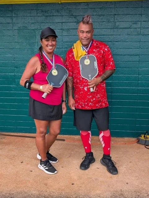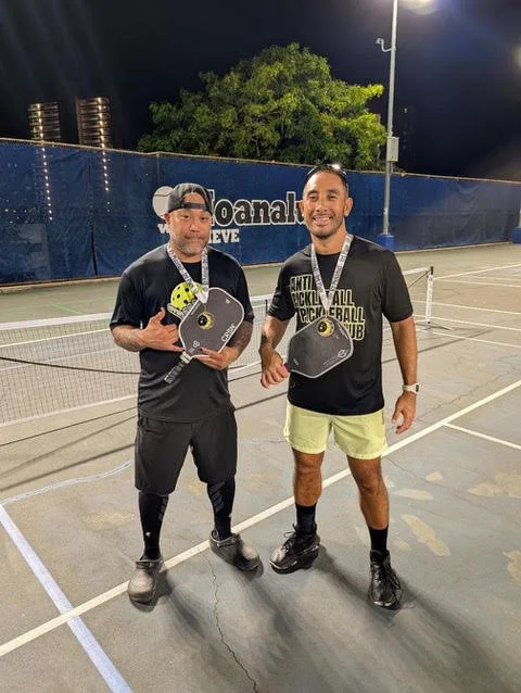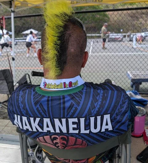 Brandon Nakanelua is easy to spot on the courts—at least, he used to be. Known for his colorful mohawk, Brandon recently showed up with a new look, the hair gone but the energy unmistakably the same. That presence carries into his pickleball story, which began unexpectedly on a makeshift driveway court. After a quick crash course on the rules and a rough first game, he walked away hooked.